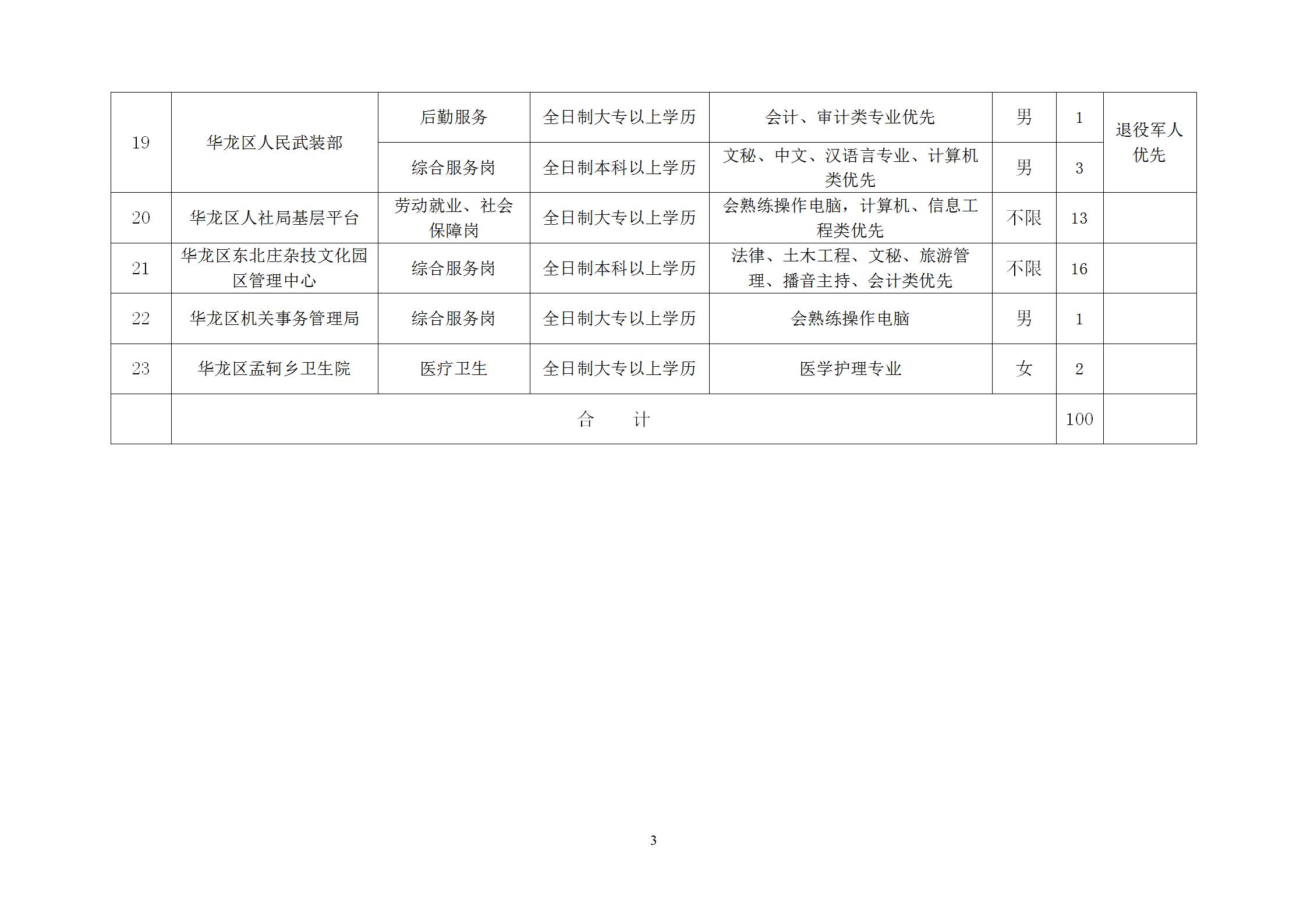 (一)公益性崗位人員招聘100名。具體招聘崗位和名額詳見(jiàn)附件1。
